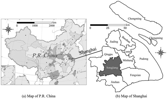 The study area of Songjiang district in Shanghai, China. (a) Map of P. R. China and (b) Map of Shanghai.
