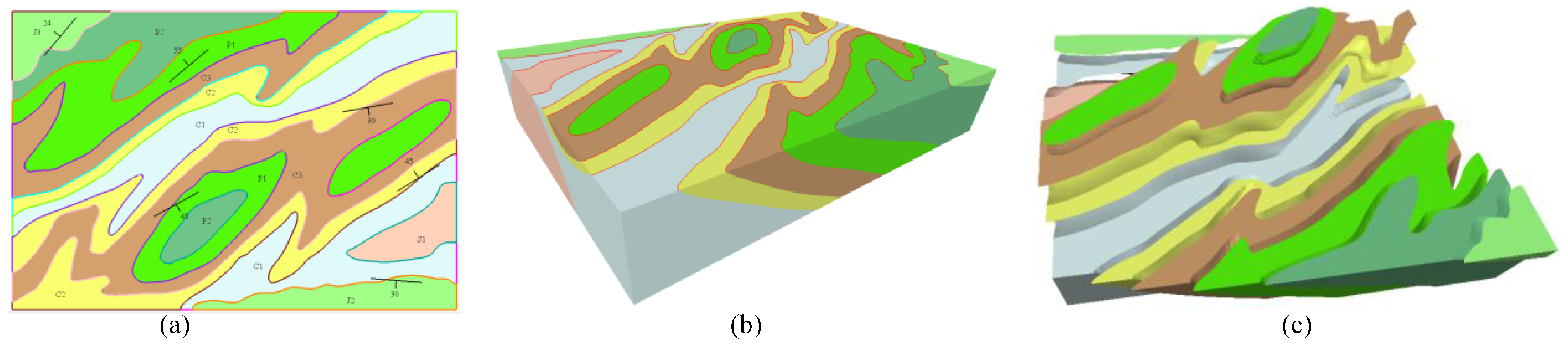 - Ming, J.; Pan, M.; Qu, H.; Ge, Z. GSIS: A 3D geological multi-body modeling system from netty cross-sections with topology. Comput. Geosci. 2010, 36, 756–767. [Google Scholar] [CrossRef]