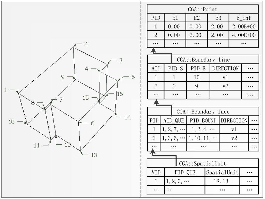 The 3D cadastral data structure based on CGA is organized in a cadastral database, as shown in