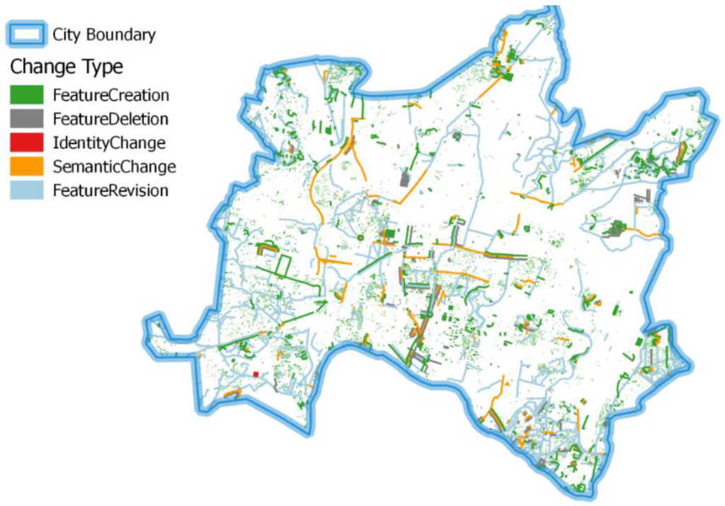 - Rehrl, K.; Brunauer, R.; Gröchenig, S. Towards a qualitative assessment of changes in geographic vector datasets. In AGILE 2015: Geographic Information Science as an Enabler of Smarter Cities and Communities; Bacao, F., Santos, M.Y., Pahino, M., Eds.; Springer International Publishing: Cham, Switzerland, 2015. [Google Scholar]