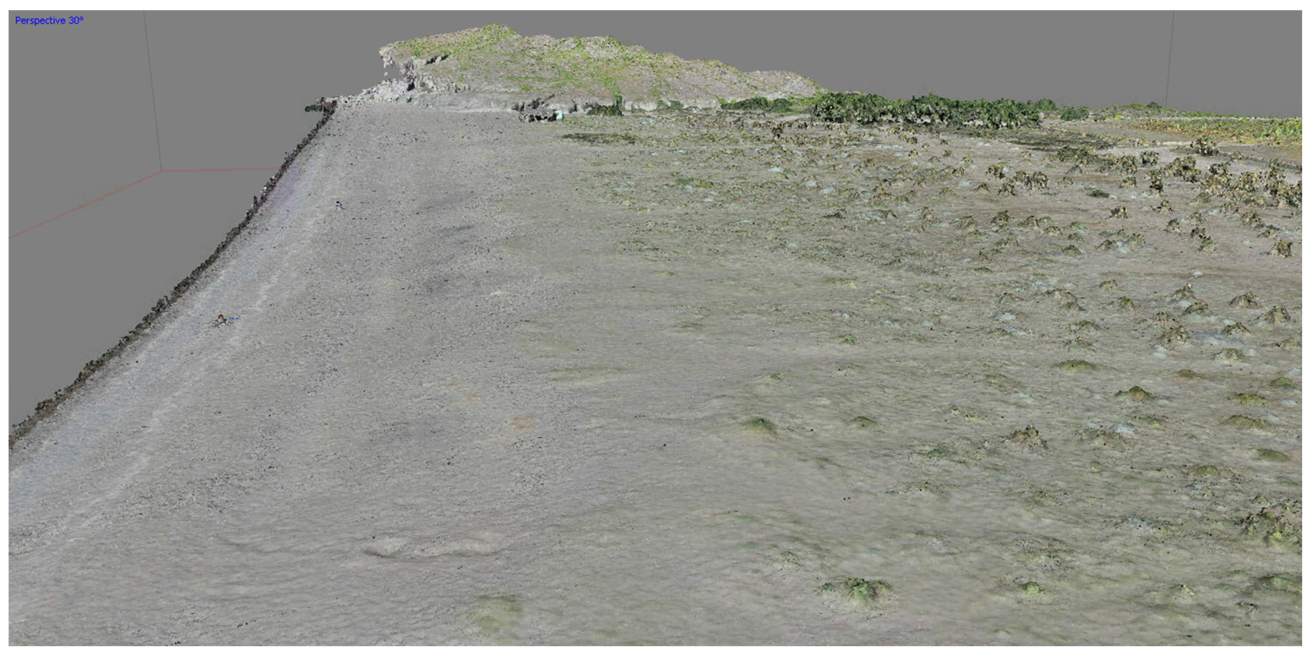 Figure 6, Figure 7 and Figure 8 show the high degree of detail that was achieved using the UAV-SfM methodology. Aside from the coastline, small variations, such as small rocks and small benches on the beach, are visible over the whole extent of the mapped area (refer to the inset in Figure 6 and Figure 8).