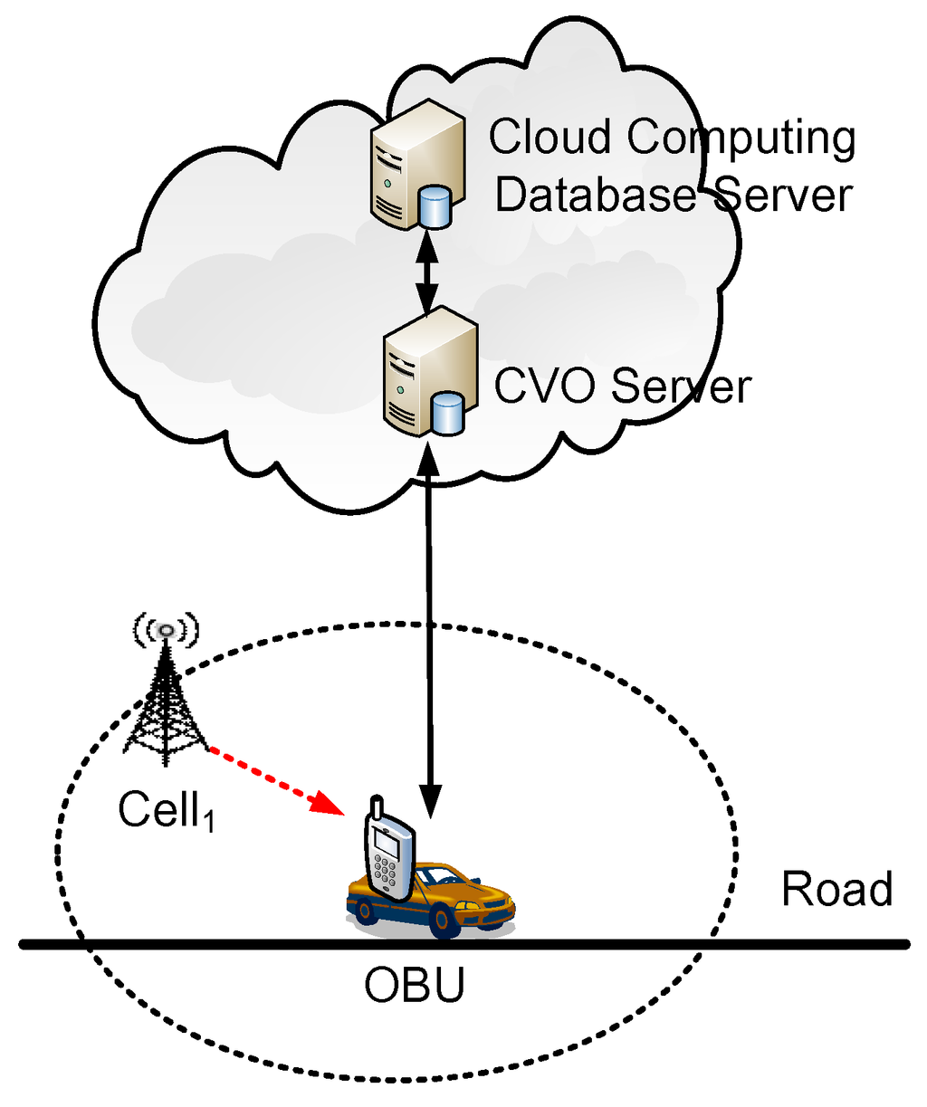 This subsection proposes a CVO system composed of OBUs, a CVO server, and a cloud computing database server (shown in Figure 5).