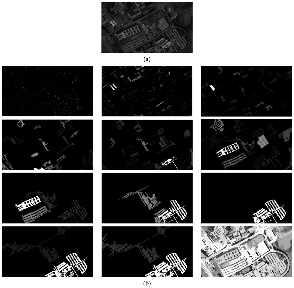 - Dalla Mura, M.; Benediktsson, J.; Waske, B.; Bruzzone, L. Morphological attribute profiles for the analysis of very high resolution images. IEEE Trans. Geosci. Remote Sens. 2010, 48, 3747–3762. [Google Scholar] [CrossRef]