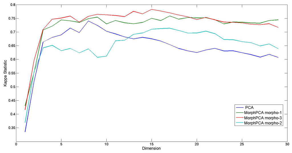 - Velasco-Forero, S.; Angulo, J.; Chanussot, J. Morphological image distances for hyperspectral dimensionality exploration using kernel-pca and isomap. In Proceedings of the 2009 IEEE International Geoscience and Remote Sensing Symposium, IGARSS 2009, Cape Town, South Africa, 12–17 July 2009.