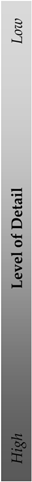 The desired level of detail is closely related to the type of information that is to be visualized (purpose) and is limited by the characteristics of the available data. Applicable aggregation approaches include spatial, temporal and thematic aggregations. Potential levels of detail range, for example, from individual GPS tracks or precisely positioned, individual agents to aggregated flows between TAZs. In cases where primarily dynamics over time are visually conveyed, the spatial reference can be partly or entirely omitted.