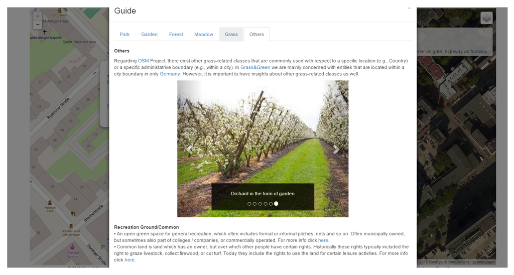 To enhance the data quality, the use of crowdsourcing is one possibility that has been previously encouraged as one dimension to ensure data quality [13]. In this paper, we encourage exploiting the crowds but in a guided manner. In crowdsourcing, participants are willing to contribute. However, they generally do not care about the target goal. For example, we tracked the participant interactions during their contribution in Grass&Green to find out whether they carefully investigated the provided descriptions or not. We found out that only 80 out of the 212 participants checked the given descriptions in the "Guide" menu. The same situation occurs in the OSM project where most of the participants contribute without spending enough time to read the provided suggestions and recommendations on the OSM Wiki pages.