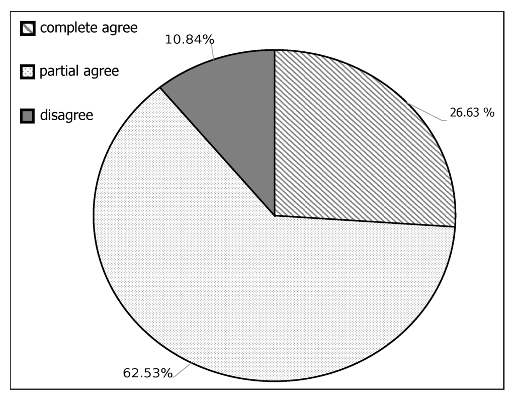 Figure 11 shows the agreement of the participants with the recommended classes as follows: 10.84% disagree, 26.89% completely agree, and 62.53% partially agree. We can conclude that about 89% of the participants have complete/partial agreement with the recommended classes. The findings indicate the success of the developed classifier to distinguish between the target classes. Furthermore, the responses and the participation implies the feasibility of the proposed approach as well.