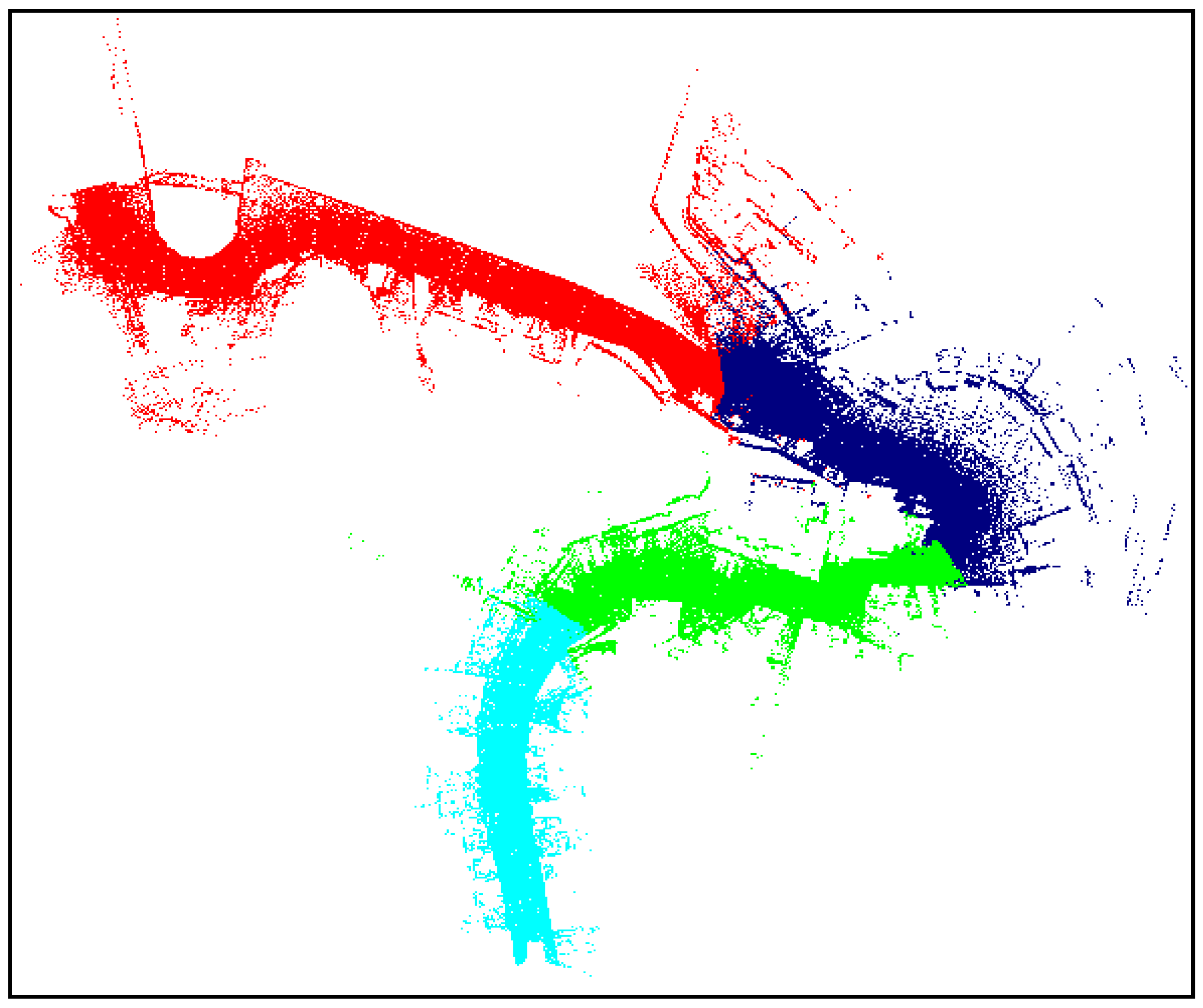 Original MLS point cloud in dataset 1 divided into four sections (represented by different colors).