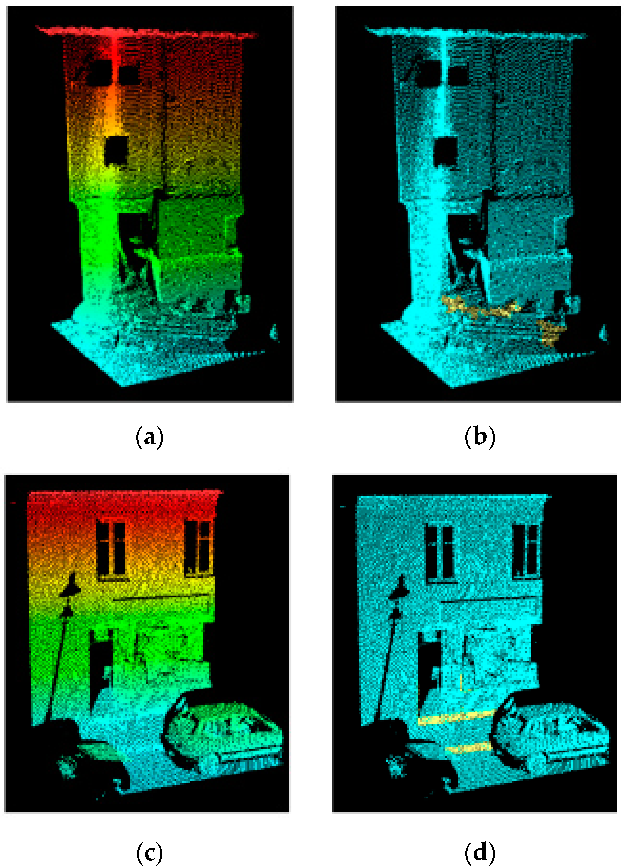 - Rutzinger, M.; Elberink, S.O.; Pu, S.; Vosselman, G. Automatic extraction of vertical walls from mobile and airborne laser scanning data. Int. Arch. Photogramm. Remote Sens. Spat. Inf. Sci. 2009, 38, W8. [Google Scholar]