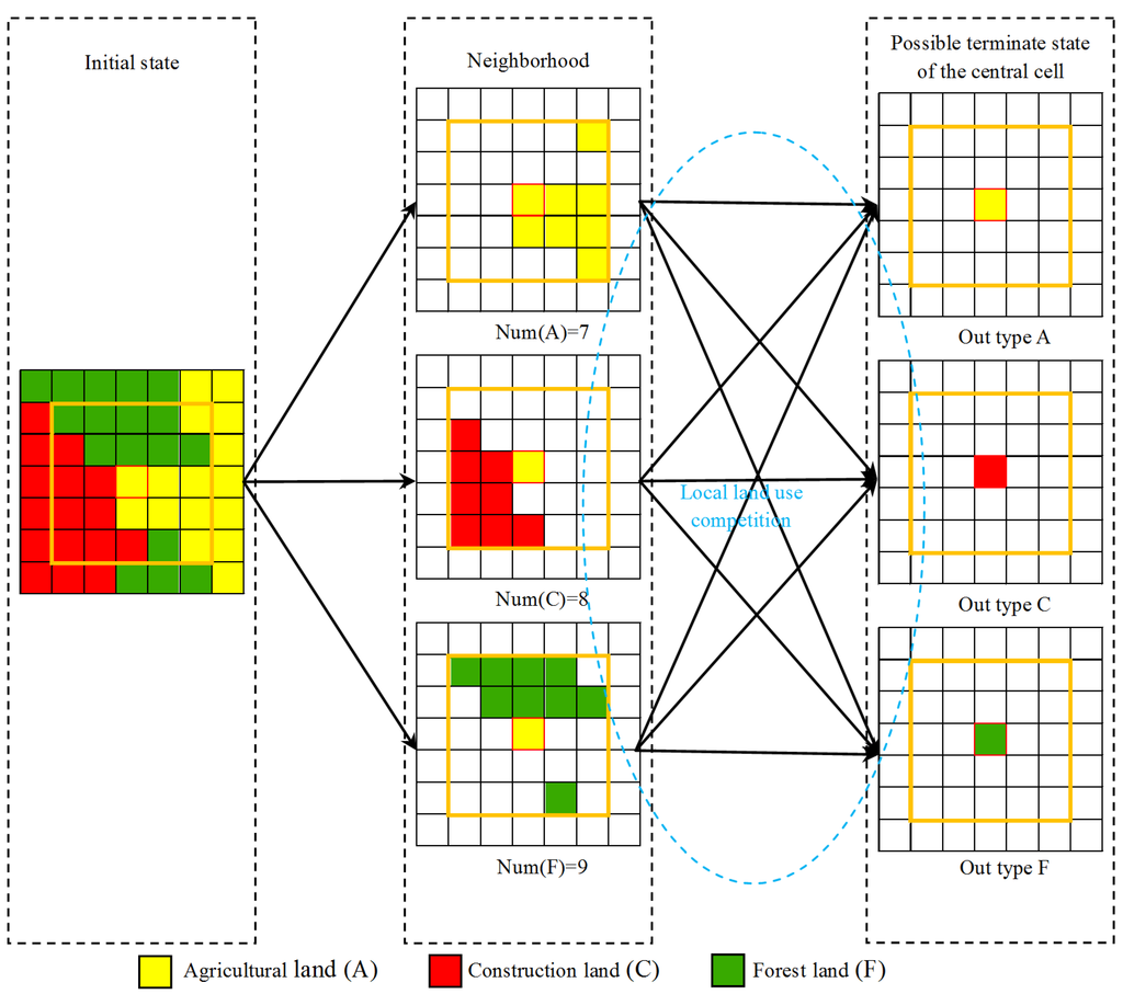 Yang, J.; Su, J.; Chen, F.; Xie, P.; Ge, Q. A Local Land Use Competition Cellular Automata Model and Its Application. ISPRS Int. J. Geo-Inf. 2016, 5, 106. https://doi.org/10.3390/ijgi5070106
