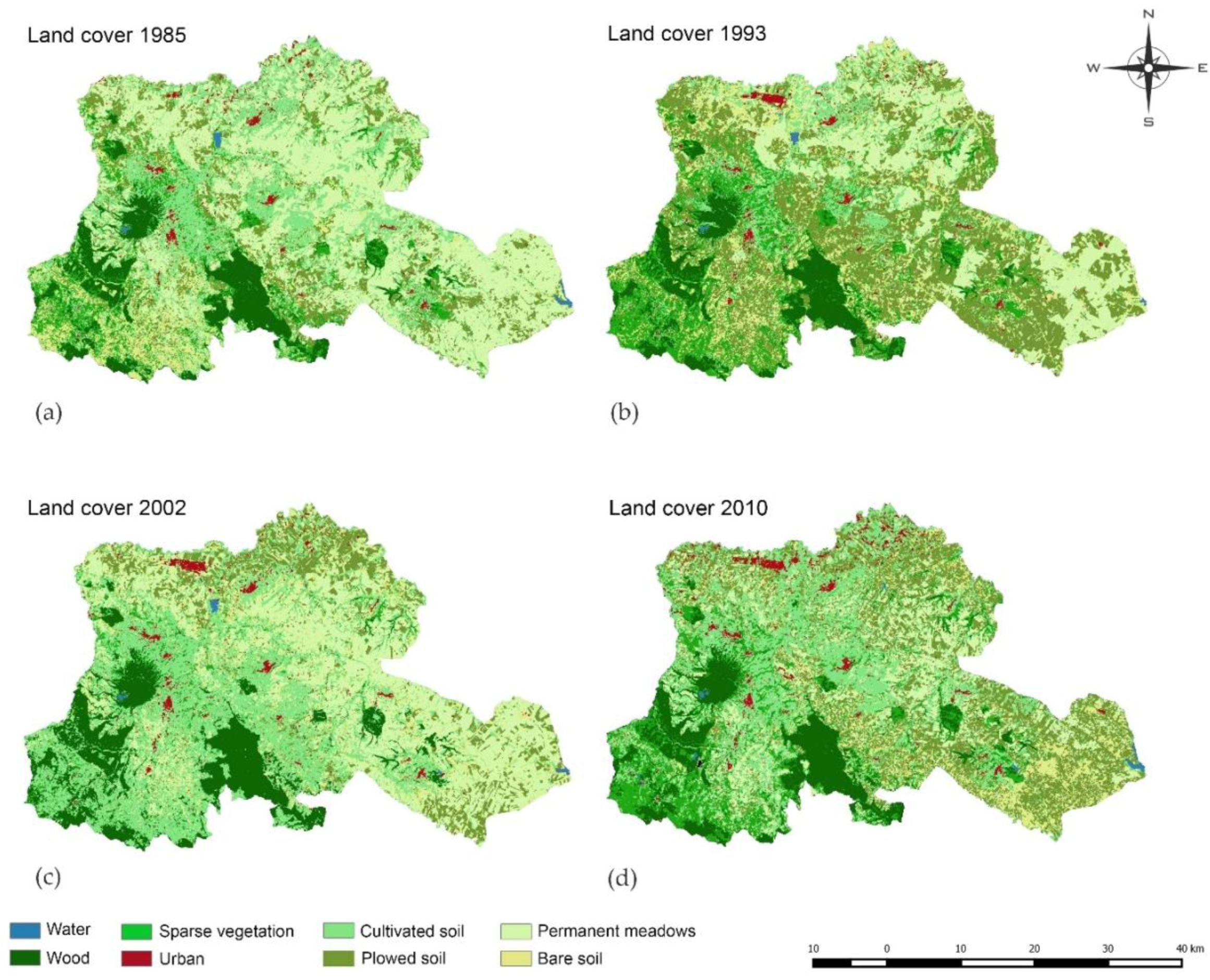 Soil covers in 1985, 1993, 2002 and 2010.
