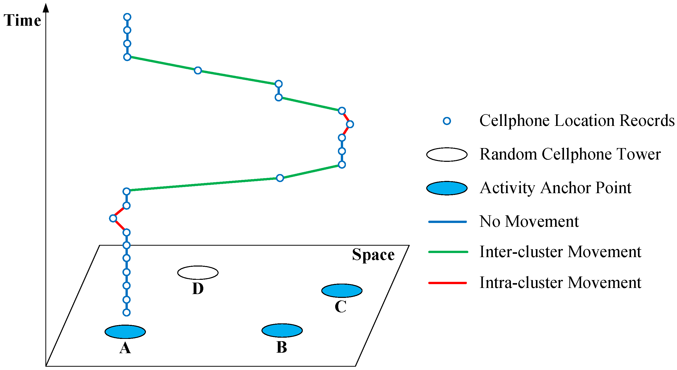 - Calabrese, F.; Diao, M.; di Lorenzo, G.; Ferreira, J.; Ratti, C. Understanding individual mobility patterns from urban sensing data: A mobile phone trace example. Transp. Res. C Emerg. Technol. 2013, 26, 301–313. [Google Scholar] [CrossRef]