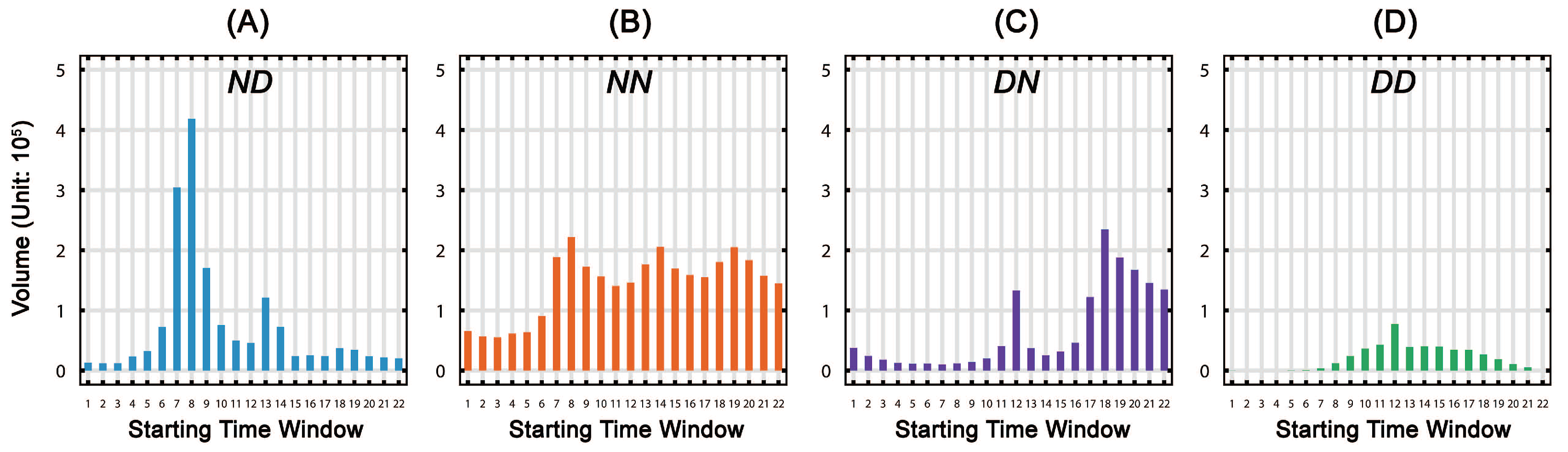 - Long, Y.; Zhang, Y.; Cui, C. Identifying commuting pattern of Beijing using bus smart card data. Acta Geogr. Sin. 2012, 67, 1339–1352. [Google Scholar]