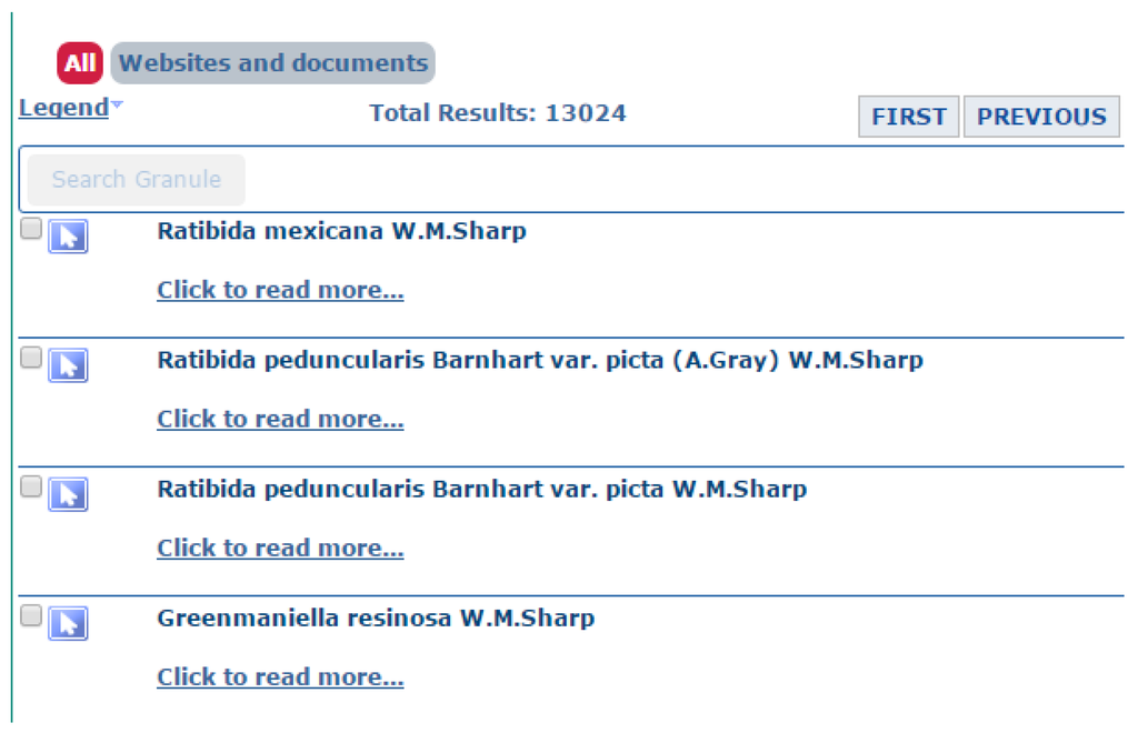 As our goal is to discover geospatial resources that follow OGC service standards or specific data formats, we can design different search keywords, such as “OGC SOS”, “web map service”, “WFS”, and “KML download”, to enrich our crawling seeds. In addition, by utilizing the power of existing web search engine, the GeoWeb Crawler can easily extend its search resource targets by simply defining the identification mechanisms and search keywords. In this study, for each keyword search, we used the URLs in the top 10 Google search pages as our crawling seeds.