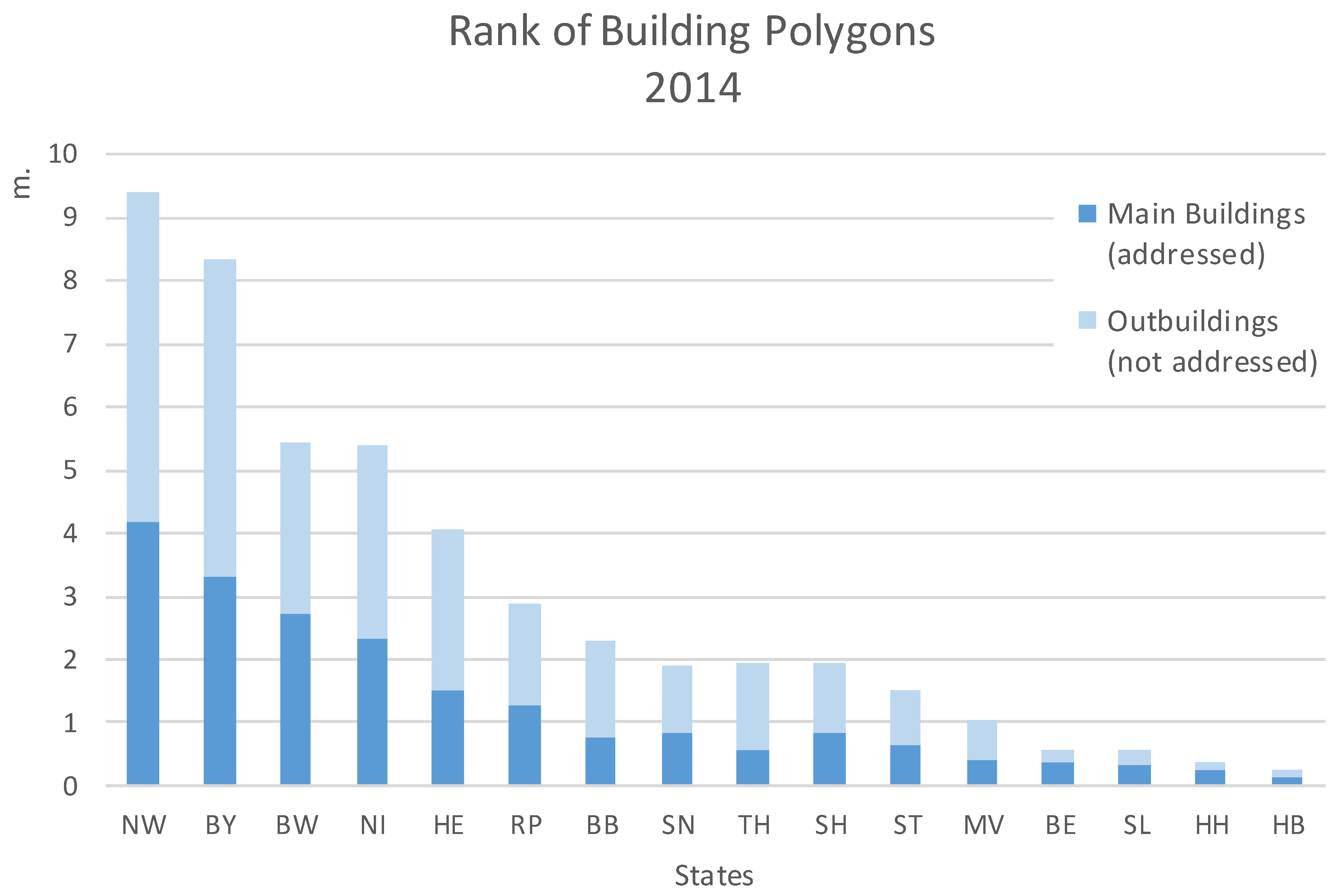 The national territory of the Federal Republic of Germany covers more than 357,000 km2 and is located between latitudes 47°N and 55°N and longitudes 5°E and 16°E. Germany’s system of governance operates at three levels: the Federal government (Bund), the 16 federal states (Länder) (see Figure A1) and more than ten thousand municipalities (Gemeinden). With a population of approx. 81 million, Germany is the most populous member state of the EU and has one of the world’s biggest economies measured by purchasing power parity. Both the population density and building density is generally higher in the western than in the eastern states, with the exception of Berlin [1].