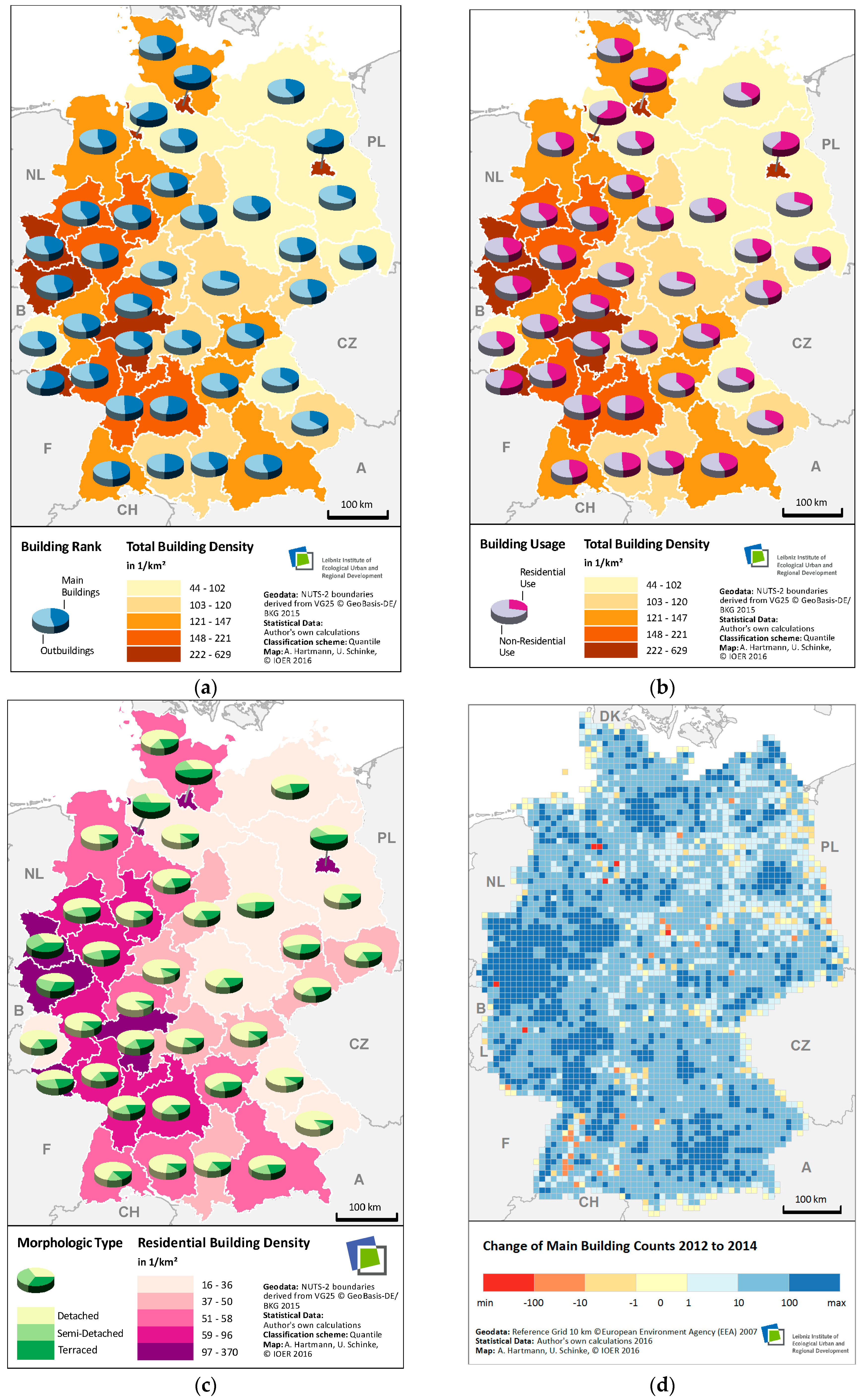 - Behnisch, M.; Ultsch, A. Estimating the number of buildings in Germany. In Advances in Data Analysis, Data Handling and Business Intelligence; Fink, A., Lausen, B., Seidel, W., Ultsch, A., Eds.; Springer: Berlin, Germany, 2009; pp. 311–318. [Google Scholar]