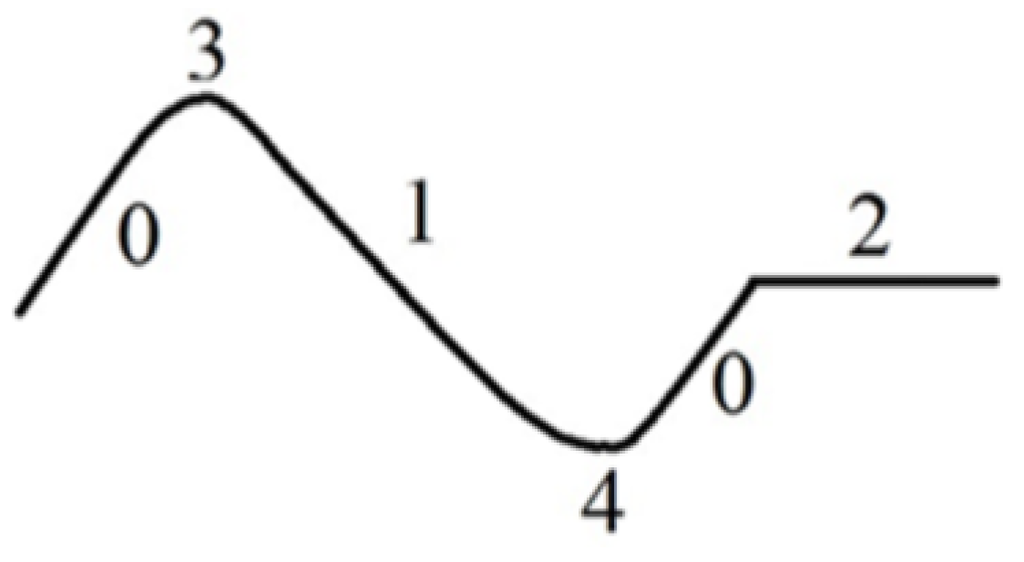 Symbolization of a spectral curve. (Ascending segment: 0, descending segment: 1, flat segment: 2, and peak and valley of the spectral curve: 3 and 4, respectively).