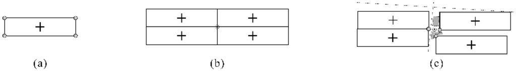 According to the basic definition and geometrical computation of the region of movability given in Section 2.1, the conflict-free search space for a rectangular label can be obtained. Specifically, the rectangular label textbox is regarded as the polygon P in Inference 1, and the midpoint of the textbox is selected as the anchor point p. Because the label textbox is symmetrical with point p, then P′ = P. The regions of “immovability” for the basic point, line and area feature are shown in Table 1.