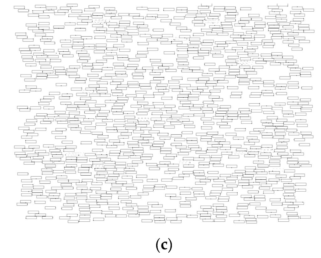 Labeling result for the RoadResident instance with 558 points. And the Chinese words are the geographic names to be labeled with no conflict. (a) Four-position model: 209 conflict-free labels; (b) four-slider model: 290 conflict-free labels; (c) the proposed model: 351 conflict-free labels.