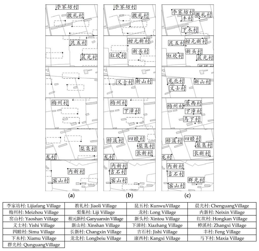 - Hirsch, S.A. An algorithm for automatic name placement around point data. Am. Cartogr. 1982, 9, 5–17. [Google Scholar] [CrossRef]