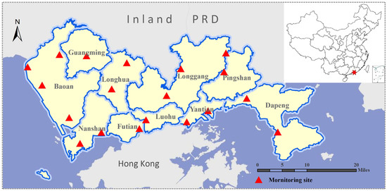 - Jahnet, H.J.; Schneider, A.; Breitner, S.; Eißner, R.; Wendisch, M.; Krämer, A. Particulate matter pollution in the megacities of the Pearl River Delta, China—A systematic literature review and health risk assessment. Int. J. Hyg. Environ. Health 2011, 214, 281–295. [Google Scholar] [CrossRef] [PubMed]