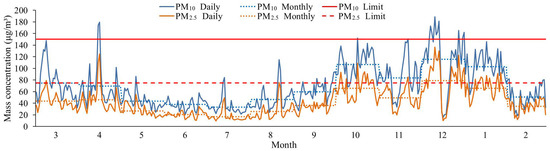 Variation of mass concentration of PM10 and PM2.5 in Shenzhen from March 2013 to February 2014.