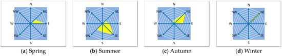 Wind rose for each season in Shenzhen from March 2013 to February 2014. (a) Spring; (b) Summer; (c) Autumn; (d) Winter.