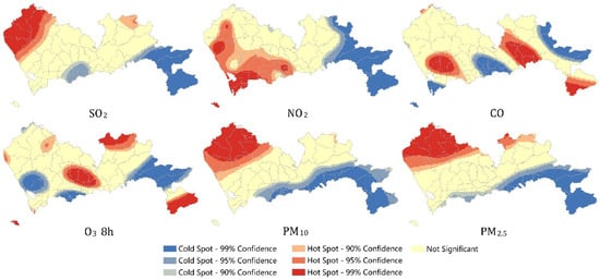 3.3.1. Spatial Agglomeration of Single Air Pollutants