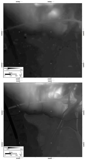 As for other filtering techniques, many breaklines or discontinuities in the landscape were smoothed during the interpolation of the final DEM []. This is the case for the aforementioned small river crossing from east to west.