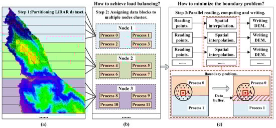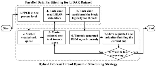 - All processes partitioned the LiDAR dataset in parallel. We named this procedure the Parallel Partitioning Method Considering Data Buffer (PPDB) (detailed in Section 3.1).