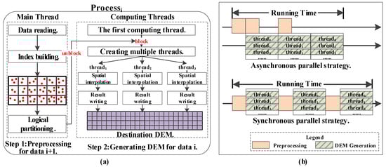 - Threads used an asynchronous parallel strategy (detailed in Section 4.2) to perform the DEM generation computation for each small data block.