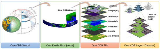 - Reed, C. Volume 0: Primer for the OGC CDB Standard: Model and Physical Data Store Structure, Version 1.0. Available online: http://www.opengeospatial.org/standards/cdb (accessed on 16 October 2017).