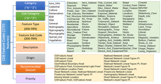- The Digital Geographic Information Exchange Standard (DIGEST), Part 4-FACC Codes, Edition 2.1, September 2000 Produced and Issued by the Digital Geographic Information Working Group (DGIWG). Available online: https://www.dgiwg.org/digest/html/DIGEST_2-1_Part4.pdf (accessed on 16 October 2017).