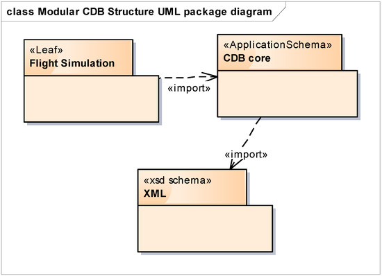 Alignment and harmonization of the CDB standard with the OGC standards baseline at the component level promote interoperability among the CDB, other OGC standards and a wide variety of different applications. Different technical components between OGC and CDB will be aligned whether the alignments are one-to-one, or can involve more complex mappings. Comparative analysis of two domains also provides a list of recommendations/issues for the future versions of the OGC CDB to expand the CDB in a possible OGC based standard. This extension mechanism includes building, specifying, and releasing a new standard(s) for CDB and an extension API (Application Program Interface) to convert CDB specifications into OGC standard(s). Future versions of the OGC CDB standard will enhance the core CDB specification and enable improvements to the application(s) that implement to the CDB standard. AS part of the revision process, an enhanced information model architecture will be designed and proposed for CDB. The overall perspective of the future version of the OGC CDB standard will be split into a core module and extensions. The core module comprises the basic concept, and each extension module covers a specific thematic field such as for flight simulation applications. According to dependency relationships among modules, each module may also import the related CDB modules. Figure 11 shows an example UML diagram of the modular architecture of the future OGC CDB conceptual model in the case of flight simulation application.