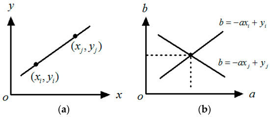 29]. The main idea is to use mathematical transformation to convert a straight line in the image space into a point in the parameter space, and obtain the linear equation by detecting the position of points. As shown in