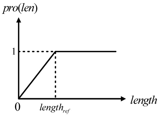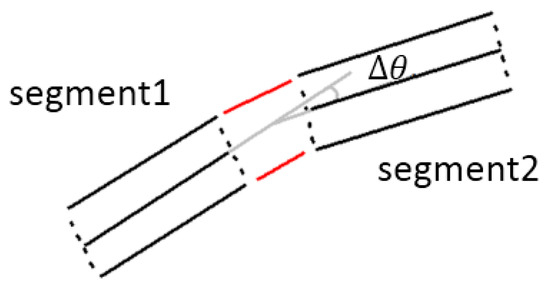 Adjacency index : represents the degree of adjacency of the endpoints of two candidate segments. The distance is calculated as the average distance between the left and right endpoints, that is . On the basis of it, the adjacency index is calculated as: .