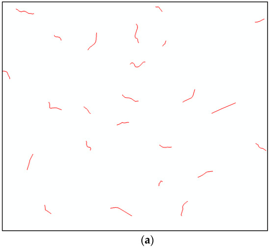 In order to obtain typical geometric features of rural roads as a guide of extracting roads from images, we first select representative sample road segments. The samples are visually interpreted based on remote sensing images and stored as vector format. It is better to select samples in the regions with different landforms, which would increase the generalizability of samples. For each type of material such as gravel, cement, asphalt and other materials, a certain number of samples should be chosen. The indicators that can reflect the geometric and spectral features of road segments are calculated including index values, value range and distribution. According to the extent of a sample road, the average gray values of each band within road regions are calculated, and the gradient value range at the edge of roads is also obtained. In addition, this paper takes the normal distribution as the theoretical distribution of the width of rural roads. In other words, the width of rural roads is expected to be around a value, and the width of most roads is close to the mean value. The distribution is represented by the function . Based on the sample road segments, the maximum likelihood estimation method is used to calculate the two parameters (standard deviation and mathematical expectation ) of road width distribution. After the distribution is obtained, the Kolmogorov–Smirnov test is used to verify if the observed width values accord with the fitted distribution model. If the K-S statistic is smaller than test statistic (), we think the quality of samples are satisfactory, otherwise, more samples are needed.