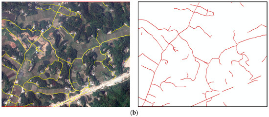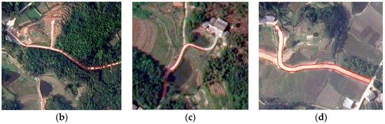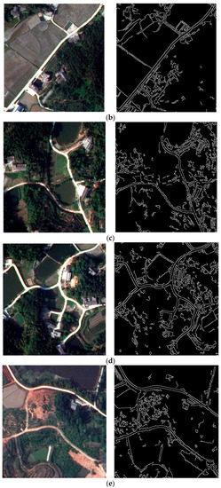 24]. Therefore, obtaining the accurate distribution and changes of rural roads is useful for government agencies to set up policies related to roads. The following problems occur when the above methods are applied to rural roads: First, the pavement of rural roads is made of various kinds of materials: asphalt, cement, gravel, stone, etc., so rural roads have different spectral reflection characteristics. Especially on high-resolution images without abundant spectral information, methods based mainly on spectral features do not perform well. Secondly, rural roads are usually not wide, and some road segments can be completely sheltered by buildings and trees along roads, so the shelter problem in rural areas is more severe than in urban areas. Third, rural roads have larger curvature than urban roads. It is difficult for existing methods to extract complete roads.