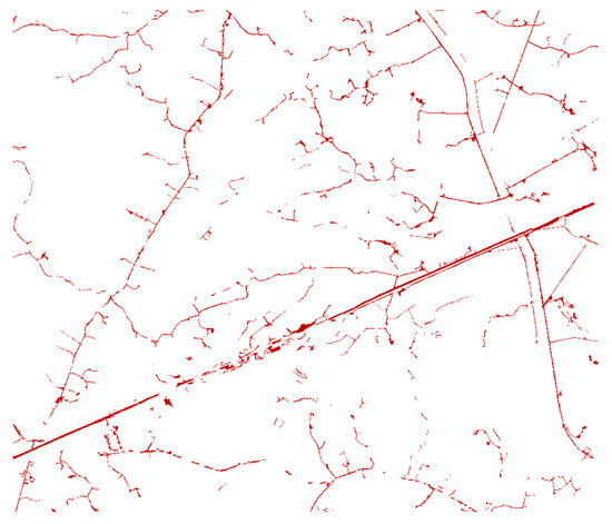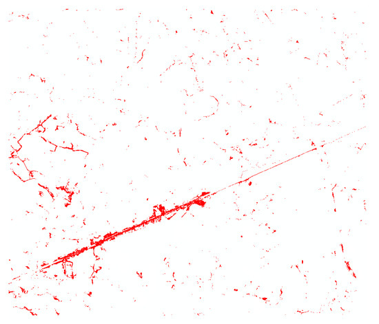 Figure 15 shows the extraction results in which the red color regions are road segments. Generally, the OOC method also obtains the overall spatial distribution of roads in the study area. In the PBC method, the same training dataset as the OOC method is used to train a maximum likelihood classifier, and