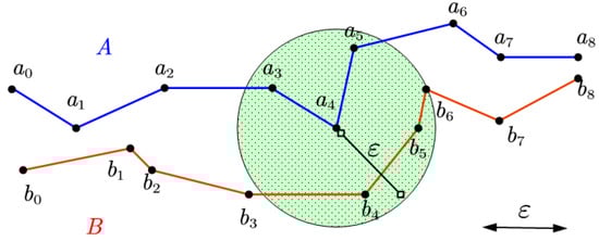 - Agarwal, P.K.; Avraham, R.B.; Kaplan, H.; Sharir, M. Computing the discrete fréchet distance in subquadratic time. In Proceedings of the Twenty-Fourth Acm-Siam Symposium on Discrete Algorithms, New Orleans, LA, USA, 6–8 January 2013; pp. 156–167. [Google Scholar]
