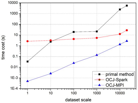 It can be seen from Table 3 that although the Spark platform is much more computationally expensive than MPI, its throughput strategy has obvious advantages, that is, its parallel acceleration potential is greater, and it can be inferred that in the larger data set experiment, Spark’s performance is likely to exceed the MPI implementation. Of course, it requires a computing cluster to provide enough memory for Spark.