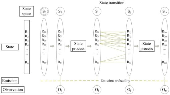 State space defines the possible states in the model, which are represented as V. Although the states are hidden, a certain map function exists between the state and the observation. State space is described as a 1 × N vector (N is the number of states in the model). The state of the system qt at time t belongs to V, that is to say, .