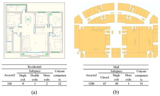 As shown in Figure 7, these are our experimental data. In Experiment I, a set of two-bedroom indoor residential floor plans was selected as the original data. In Experiment II, the first-floor plan of a mall was selected as the raw data.