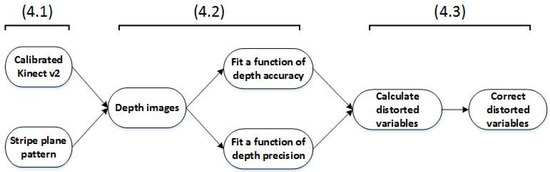 This paper is organized as follows: Section 2 discusses the related work on properties of Kinect v2 and using Kinect v2 for 3D reconstruction. Then we make a comprehensive analysis of the Kinect v2’s characteristics, including intrinsic parameters, extrinsic parameters, and lens distortions in Section 3. In Section 4, we propose the post-rectification approach of the depth images in detail. Furthermore, we carry out experiments and present the final results in Section 5. Finally, conclusions are offered in Section 6.