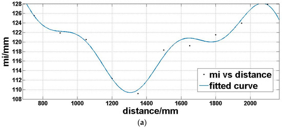 where d is the distance, md is the offset expectation corresponding to the distance, sd is the offset standard deviation corresponding to the distance. a1, a2, a3, b1, b2, b3, c1, c2, and c3 are coefficients to be determined in Equation (7). t1 and t2 are coefficients to be determined in Equation (8).