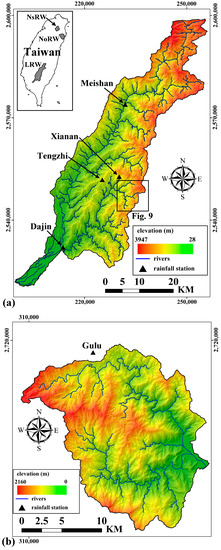 Extreme rainfall events occur frequently in Asian countries, including Japan [1,2], Korea [3], India [4], Taiwan [5], and Thailand [6]. Rainfall and earthquakes have been identified as the main triggers of landslides in Taiwan, especially of the extreme rainfall-induced landslide disasters in recent decades. Extreme rainfall-induced disaster events in Taiwan have been catastrophic and powerful, such as the disasters caused by Typhoon Morakot in 2009 [7,8].