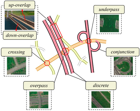 In Figure 7, these terms are presented with illustrations and corresponding satellite images, and the spatial relationships of road intersections are explained.