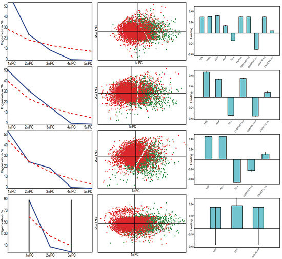- Jackson, D.A. Stopping Rules in Principal Components Analysis: A Comparison of Heuristical and Statistical Approaches. Ecology 1993, 74, 2204–2214. [Google Scholar] [CrossRef]