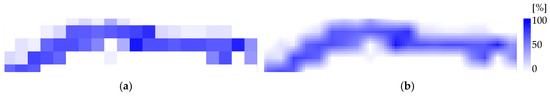 Semi-simulated fractions are produced along the two rivers based on the methodology described in Section 3.1. As discussed in detail, this provides an input without any error for SRM methods, as well as for the hard classification. The sub-pixel detail neglected by hard classifiers and the performance of SRM methods through allocation of sub-pixels are investigated thoroughly (Section 4.2).