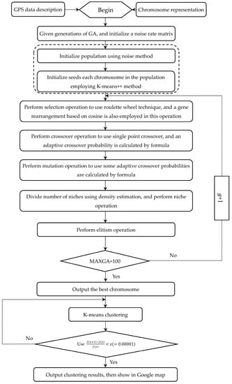 Zhou, X.; Gu, J.; Shen, S.; Ma, H.; Miao, F.; Zhang, H.; Gong, H. An Automatic K-Means Clustering Algorithm of GPS Data Combining a Novel Niche Genetic Algorithm with Noise and Density. ISPRS Int. J. Geo-Inf. 2017, 6, 392. https://doi.org/10.3390/ijgi6120392